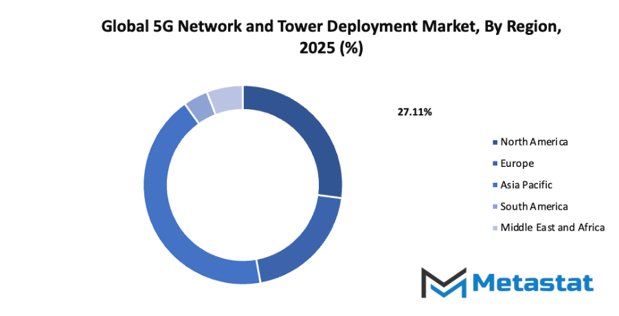 • Based on geography, the global 5G network and tower deployment market is divided into North America, Europe, Asia-Pacific, South America, and the Middle East & Africa.