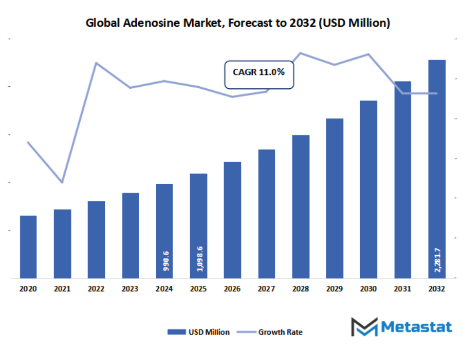 The global adenosine market by Metastat Insight depicts an increase in interest for drug innovation and therapy improvement. Adenosine, a naturally occurring nucleoside, continues to be recognized for the management of cardiac conditions and support for diverse medical procedures. With growing demand for efficient cardiovascular medications, the market will see significant growth in the future years. Pharmaceutical firms are investing significantly in research and development to seek adenosine's wider medical possibilities, which has resulted in an upsurge in product development as well as enhanced clinical applications.