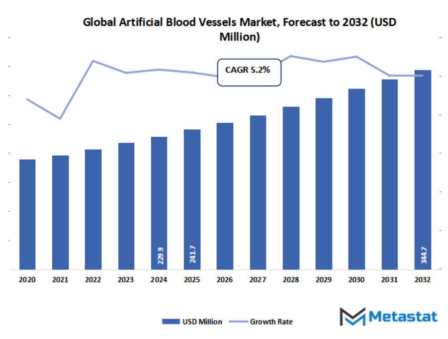 - Global artificial blood vessels market valued at approximately USD 241.7 million in 2025, growing at a CAGR of around 5.2% through 2032, with potential to exceed USD 344.7 million.
