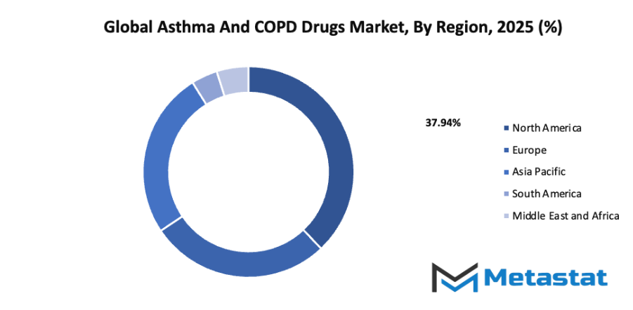 - Based on geography, the global asthma and COPD drugs market is divided into North America, Europe, Asia-Pacific, South America, and the Middle East & Africa.