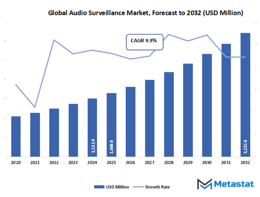 - The global audio surveillance market valued at approximately USD 1660 million in 2025, growing at a CAGR of around 9.9% through 2032, with potential to exceed USD 3215.6 million.