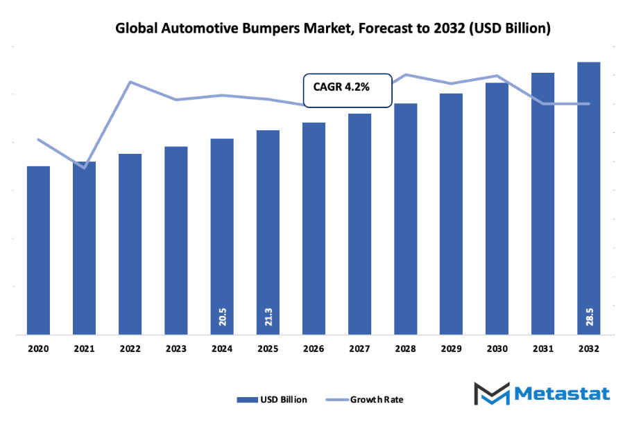 - The global automotive bumpers market is predicted to be worth about USD 21.3 billion by 2025, that is with a compound annual growth rate (CAGR) of 4.2% expected to last through 2032, and the total possible scenario reaching even USD 28.5 billion.