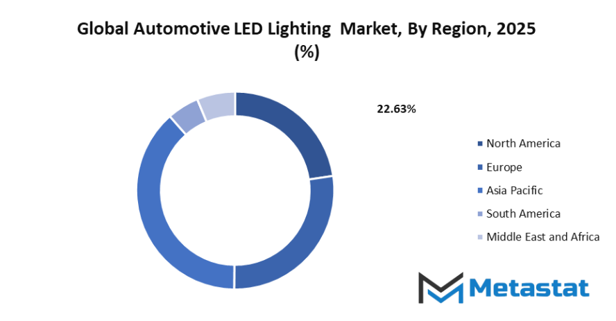Asia-Pacific (with the biggest markets such as India, China, Japan, South Korea, and the Rest of Asia-Pacific) will be a major player in the world due to its solid vehicle-making ecosystem and the rising need for passenger and commercial vehicles. South America, with Brazil and Argentina at its forefront, will be using LED lighting technology more and more as its regional automotive industries update and shift towards energy-efficient solutions.