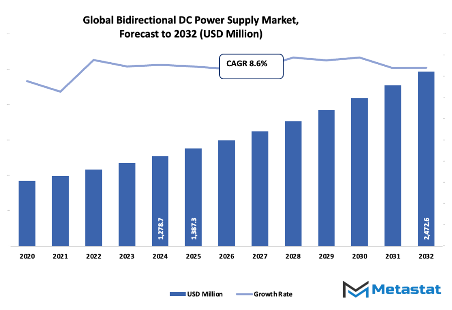 - Global bidirectional dc power supply market valued at approximately USD 1387.3 million in 2025, recorded a CAGR of approximately 8.6% from 2032 and having potential to cross USD 2472.6 million.