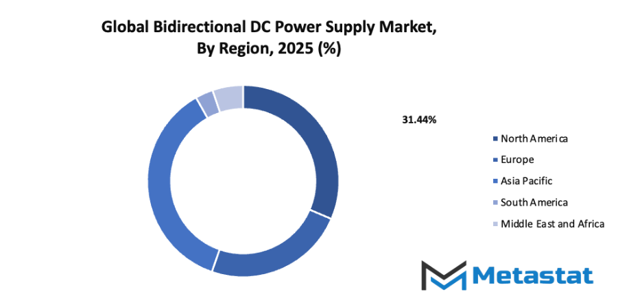 - Based on geography, the global bidirectional dc power supply market is divided into North America, Europe, Asia-Pacific, South America, and the Middle East & Africa.