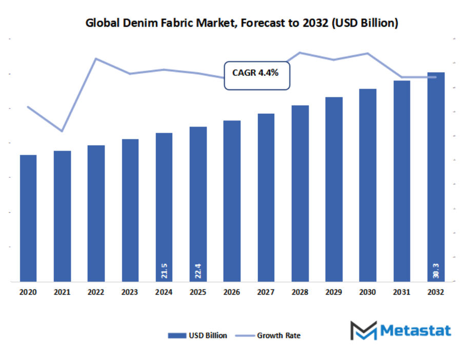 Market size is forecast to rise from USD 22.4 Billion in 2025 to over USD 30.3 Billion by 2032. Denim Fabric will maintain dominance but face growing competition from emerging formats.