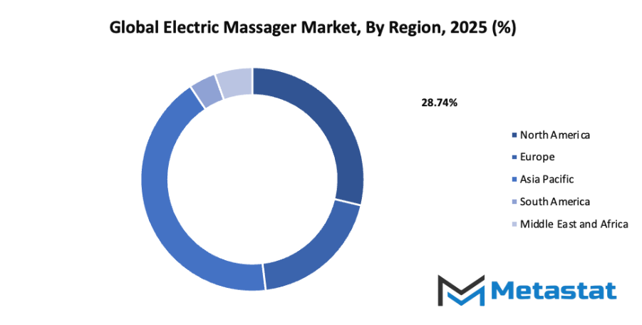 - Based on geography, the global electric massager market is divided into North America, Europe, Asia-Pacific, South America, and the Middle East & Africa.