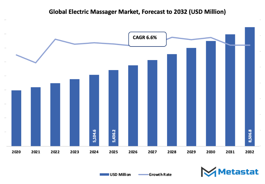 - Global electric massager market valued at around USD 5436.2 million in 2025, expanding with a CAGR of around 6.6% during 2032, with the prospect of reaching beyond USD 8506.8 million.