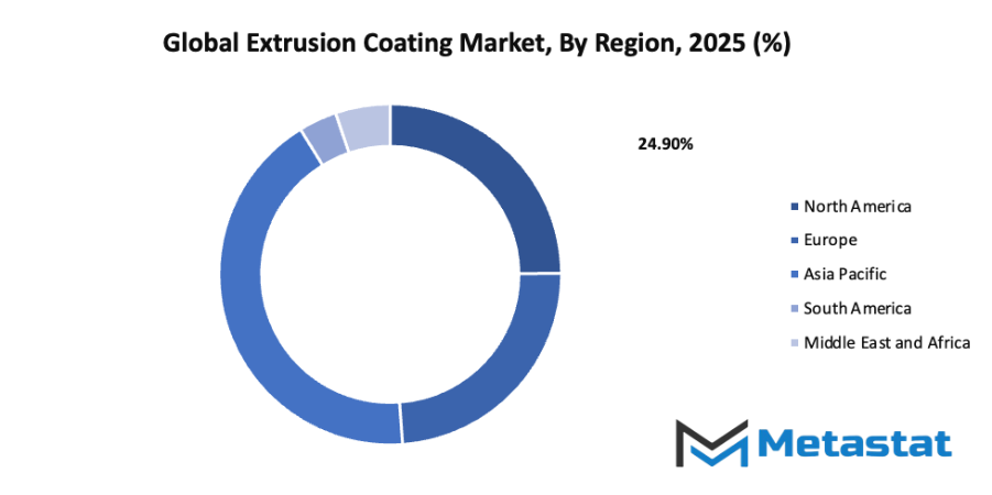 - Based on geography, the global extrusion coating market is divided into North America, Europe, Asia-Pacific, South America, and the Middle East & Africa.