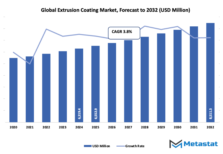 The global extrusion coating market has been in the packaging and materials industry ever since it developed from a small-scale manufacturing process into a complex process molding today's packaging items. It began its beginnings in the mid-20th century when business entities started looking for options to conventional lamination processes that were not only time-consuming but also had low scope of application. With the increased demand for light, flexible, and water-resistant packages, Extrusion Coating emerged as a cutting-edge technology that could improve the performance and the lifespan of paper, foil, and film substrates. Basic polyethylene coatings employed in food packaging and paper cups dominated the global market of Extrusion Coating in its formative years.
