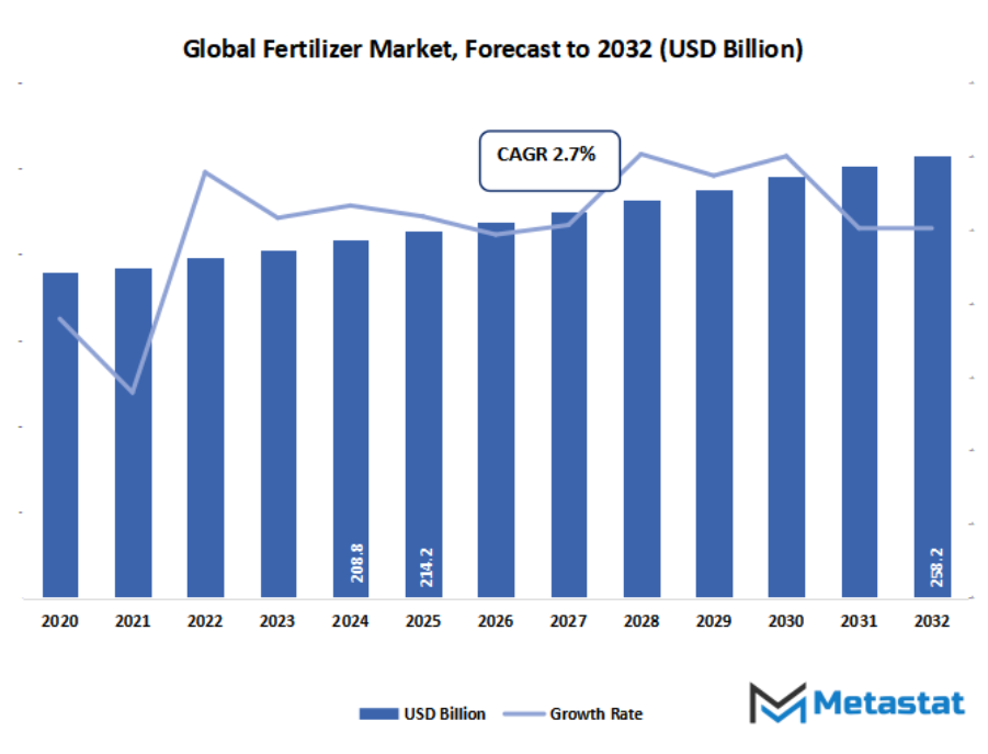 Market size is forecast to rise from USD 214.2 Billion in 2025 to over USD 258.2 Billion by 2032. Fertilizer will maintain dominance but face growing competition from emerging formats.
