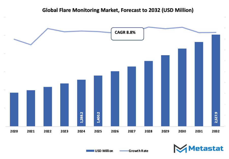 - Global flare monitoring market worth of about USD 1400.2 million in 2025, at a CAGR of about 8.8% from 2032, with the potential to grow beyond USD 2527.9 million.