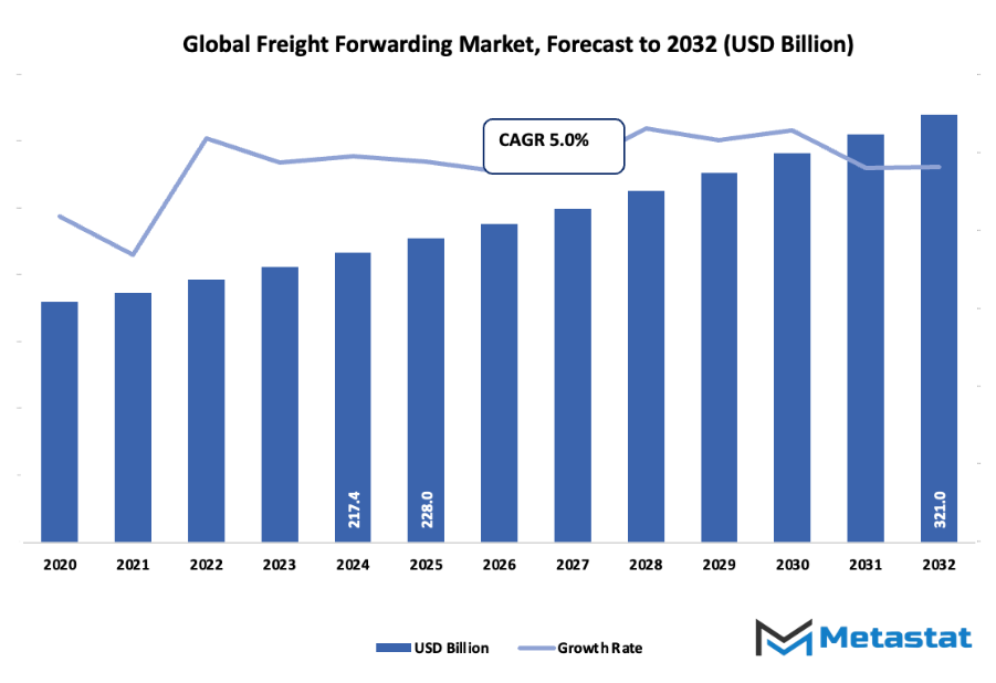 - Global freight forwarding market was valued at roughly USD 228 million in 2025 and is projected to grow at a CAGR of around 5.0% through 2032, potentially surpassing USD 321 million.