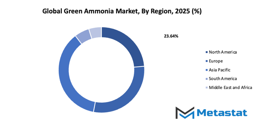 • Based on geography, the global green ammonia market is divided into North America, Europe, Asia-Pacific, South America, and the Middle East & Africa.