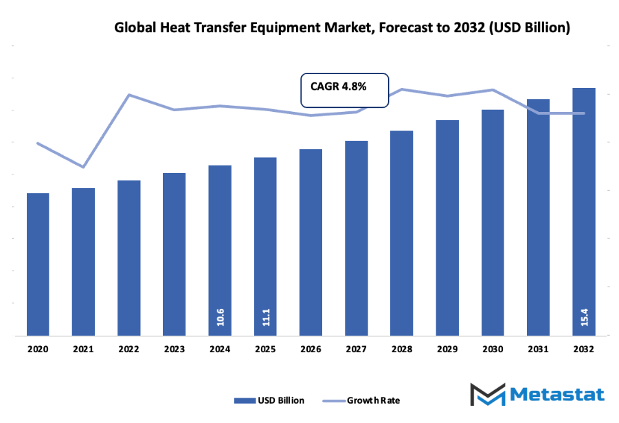 • Global heat transfer equipment market value of approximately USD 11.1 Billion in the year 2025, growing at approximately 4.8% through 2032, with the scope for even greater growth above USD 15.4 Billion.
