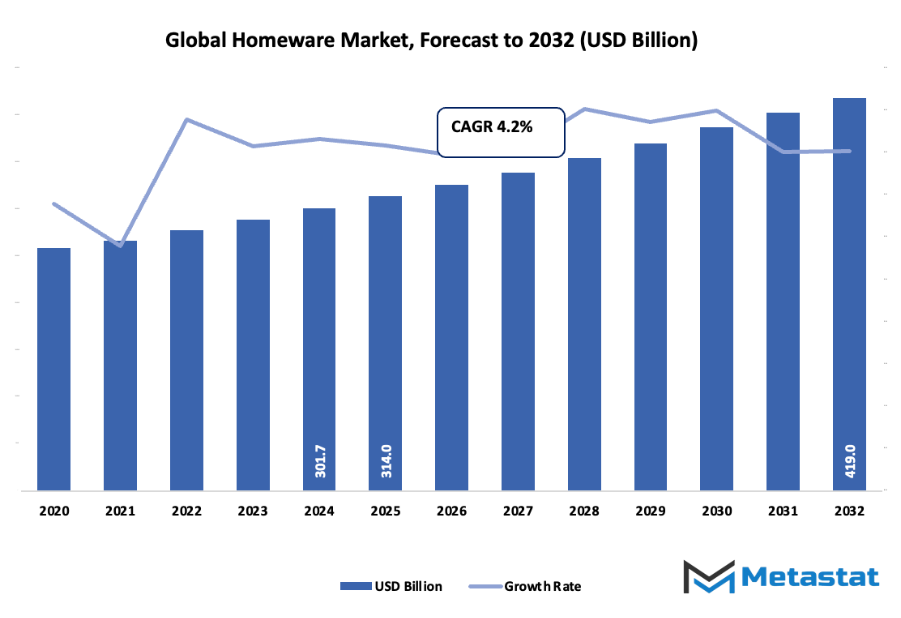 • The global homeware market is expected to be worth around USD 314 billion by the year 2025, with a compound annual growth rate (CAGR) of about 4.2% from 2025 to 2032, and the market's value might go over USD 419 billion.