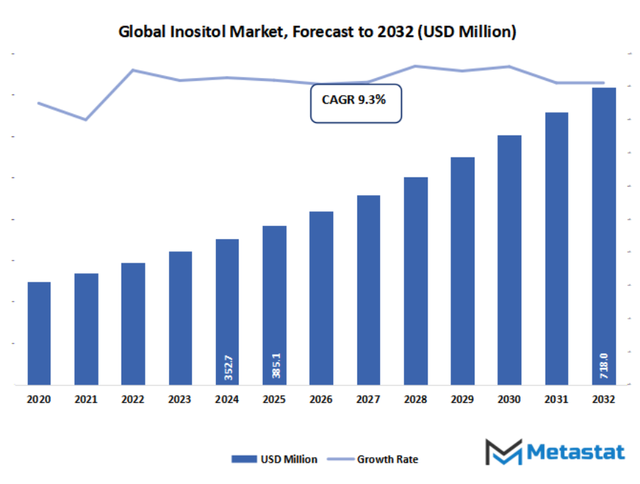 - Global inositol market valued at approximately USD 385.1 million in 2025, growing at a CAGR of around 9.3% through 2032, with potential to exceed USD 718 million.