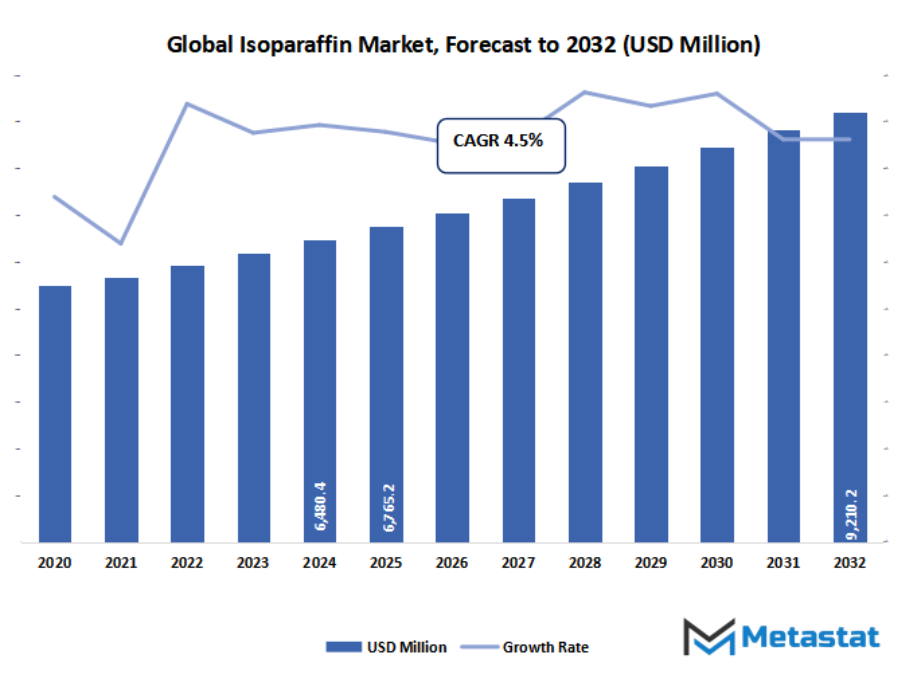 - The global isoparaffin solvents market valued at approximately USD 6765.2 million in 2025, growing at a CAGR of around 4.5% through 2032, with potential to exceed USD 9210.2 million.