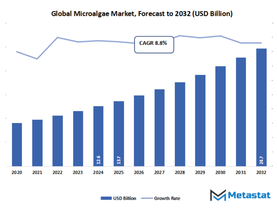 Market size is forecast to rise from USD 13.7 Billion in 2025 to over USD 24.7 Billion by 2032. Microalgae will maintain dominance but face growing competition from emerging formats.