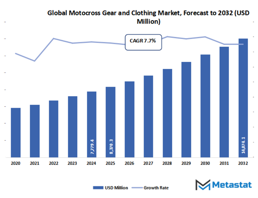 - Global motocross gear and clothing market valued at approximately USD 8370.3 million in 2025, growing at a CAGR of around 7.7% through 2032, with potential to exceed USD 14074.1 million.