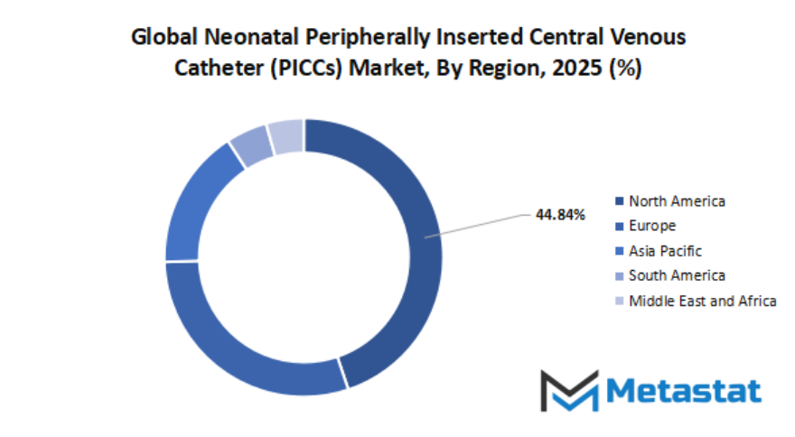 Based on geography, the global neonatal peripherally inserted central venous catheter (PICCs) market is divided into North America, Europe, Asia-Pacific, South America, and Middle East & Africa. North America is further divided in the U.S., Canada, and Mexico, whereas Europe consists of the UK, Germany, France, Italy, and Rest of Europe. Asia-Pacific is segmented into India, China, Japan, South Korea, and Rest of Asia-Pacific. The South America region includes Brazil, Argentina, and the Rest of South America, while the Middle East & Africa is categorized into GCC Countries, Egypt, South Africa, and Rest of Middle East & Africa.