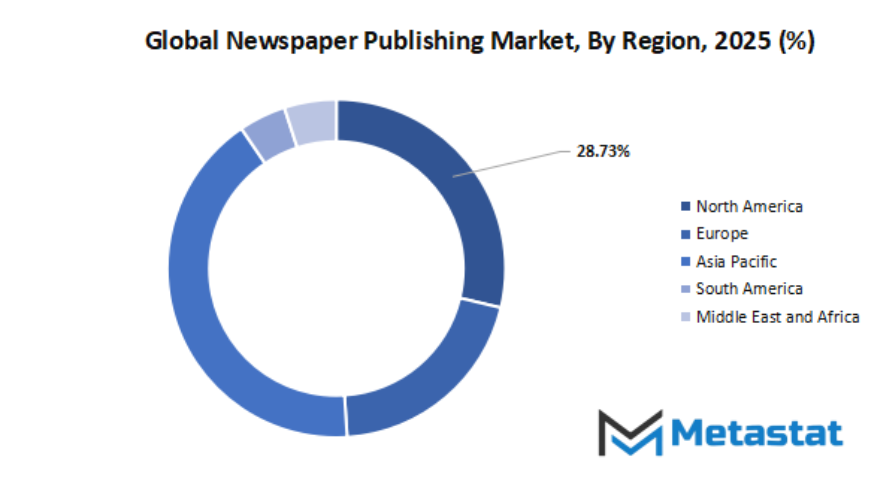 Based on geography, the global newspaper publishing market is divided into North America, Europe, Asia-Pacific, South America, and Middle East & Africa. North America is further divided in the U.S., Canada, and Mexico, whereas Europe consists of the UK, Germany, France, Italy, and Rest of Europe. Asia-Pacific is segmented into India, China, Japan, South Korea, and Rest of Asia-Pacific. The South America region includes Brazil, Argentina, and the Rest of South America, while the Middle East & Africa is categorized into GCC Countries, Egypt, South Africa, and Rest of Middle East & Africa.