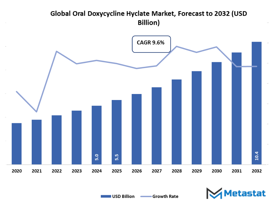 - Key trends driving growth: Rising prevalence of bacterial and respiratory infections globally., Growing use of doxycycline in dermatology for acne and rosacea treatment.