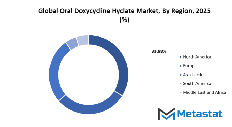 Based on geography, the global oral doxycycline hyclate market is divided into North America, Europe, Asia-Pacific, South America, and Middle East & Africa. North America is further divided in the U.S., Canada, and Mexico, whereas Europe consists of the UK, Germany, France, Italy, and Rest of Europe. Asia-Pacific is segmented into India, China, Japan, South Korea, and Rest of Asia-Pacific. The South America region includes Brazil, Argentina, and the Rest of South America, while the Middle East & Africa is categorized into GCC Countries, Egypt, South Africa, and Rest of Middle East & Africa.