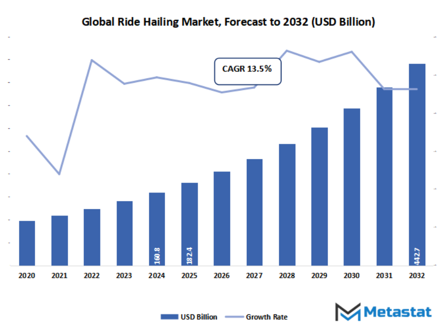 The global ride hailing market will break free from the confines of conventional mobility solutions and evolve into an umbrella industry that links technology, sustainability, and convenience on an unprecedented scale. With cities becoming smarter and transport more data-oriented, ride-hailing will not only serve commuters who look for hasty rides but will influence future urban infrastructure to a greater extent. This market will increasingly enlarge its reach into sectors like logistics, self reliant vehicle deployment, and mobility integration offerings, remaking how goods and those travel within areas.