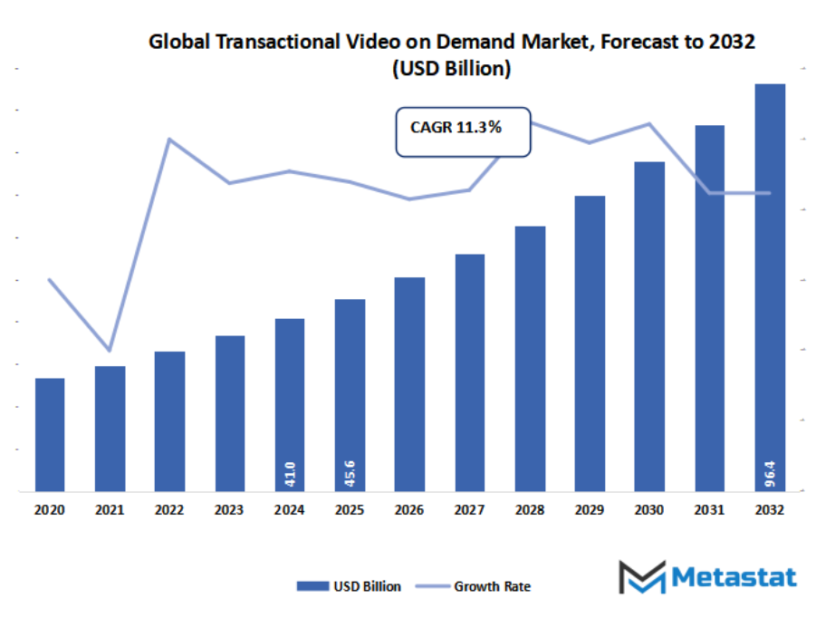 Market size is forecast to rise from USD 45.6 Billion in 2025 to over USD 96.4 Billion by 2032. Transactional Video On Demand will maintain dominance but face growing competition from emerging formats.