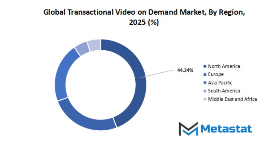Based on geography, the global transactional video on demand market is divided into North America, Europe, Asia-Pacific, South America, and Middle East & Africa. North America is further divided in the U.S., Canada, and Mexico, whereas Europe consists of the UK, Germany, France, Italy, and Rest of Europe. Asia-Pacific is segmented into India, China, Japan, South Korea, and Rest of Asia-Pacific. The South America region includes Brazil, Argentina, and the Rest of South America, while the Middle East & Africa is categorized into GCC Countries, Egypt, South Africa, and Rest of Middle East & Africa.