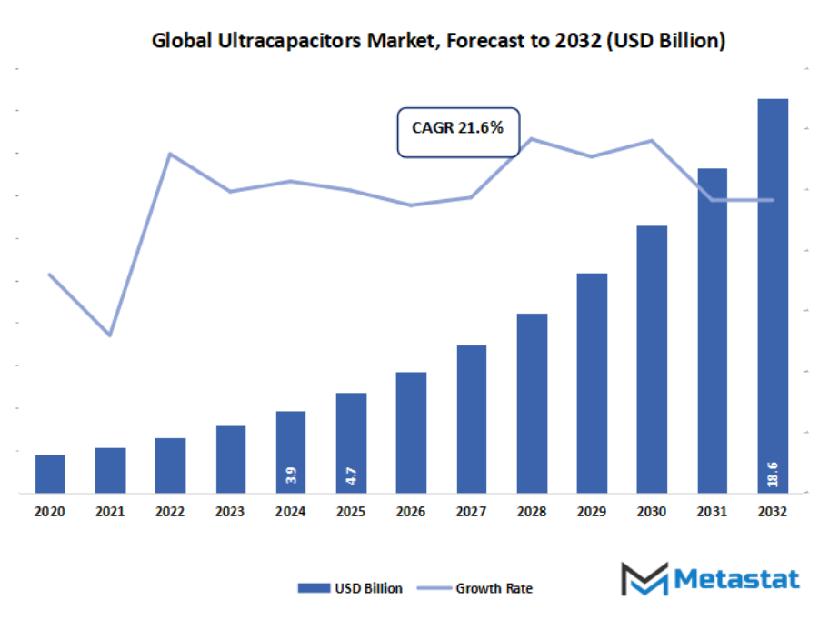 Global Ultracapacitors market is estimated to grow with a CAGR of 21.6% from 2025 to 2032.