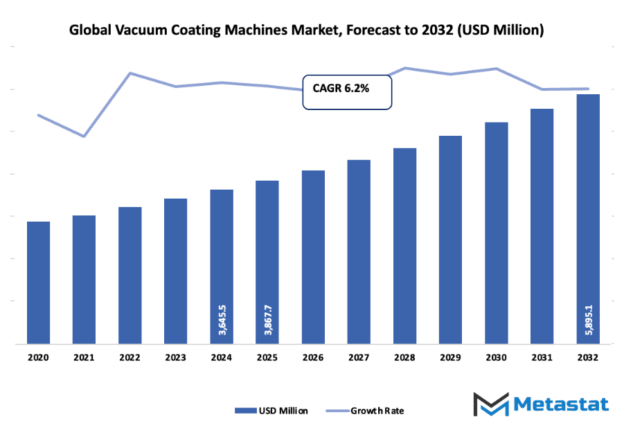- Estimated global vacuum coating machines market size of approximately USD 3867.7 million in 2025, expanding at an estimated growth rate of about 6.2% CAGR in 2032 and has the potential to grow past USD 5895.1 million.