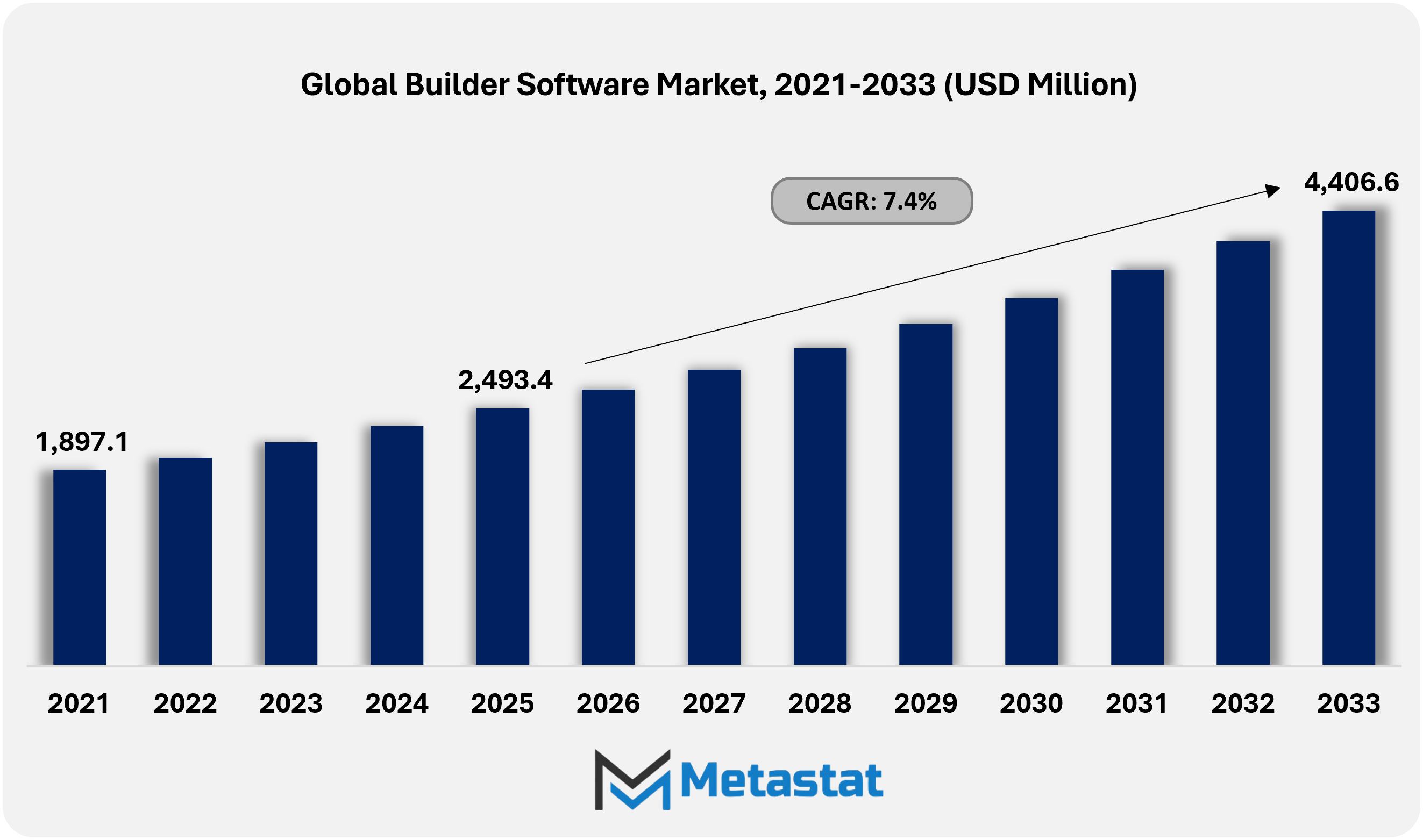 Global Builder Software market was valued at USD 2,674.9 million in 2026 and is projected to reach USD 4,406.6 million by 2033, at a CAGR of 7.4% during the forecast period.